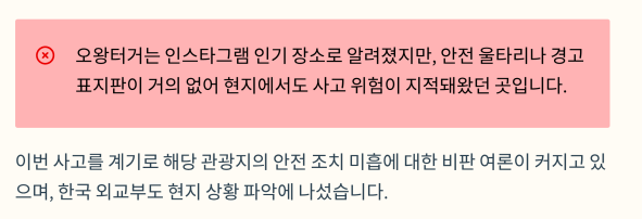 해당 관광지의 안전 조치 미흡에 대한 비판 여론이 커지고 있으며,