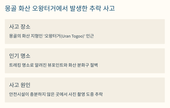 사건 개요: 몽골 화산 오왕터거에서 발생한 추락 사고
