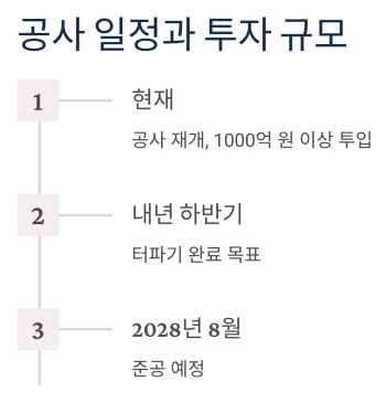 | 준공 목표 | 2028년 8월 | 터파기 내년 완료 |
