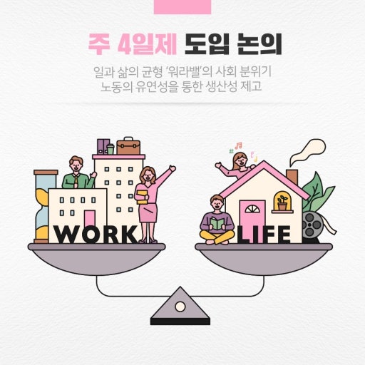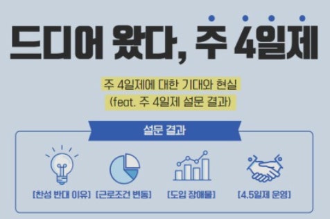 - 현재 전체 근로자의 약 50% 이상이 주 4일제 참여 중