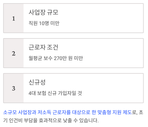 | 신규성 | 4대 보험 신규 가입자일 것 |