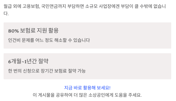 고용보험 및 국민연금 보험료의 일부(약 80%)를 지원합니다.