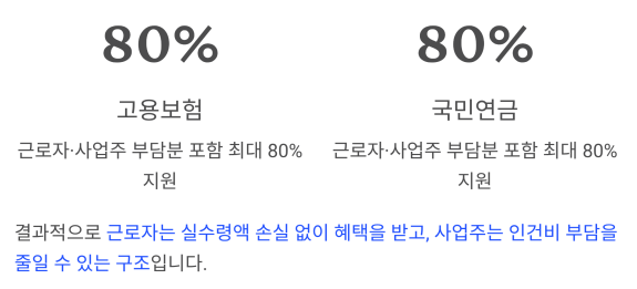 | 고용보험 | 최대 80% | 근로자·사업주 부담분 포함 |