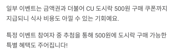 | 도시락 이벤트 | 500원 구매 쿠폰 제공 |