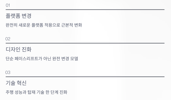 그 결과, 디자인뿐 아니라 주행 성능과 탑재 기술도 한 단계 진화했습니다.