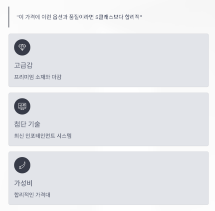 “이 가격에 이런 옵션과 품질이라면 S클래스보다 합리적”이라는 의견도 나왔습니다.