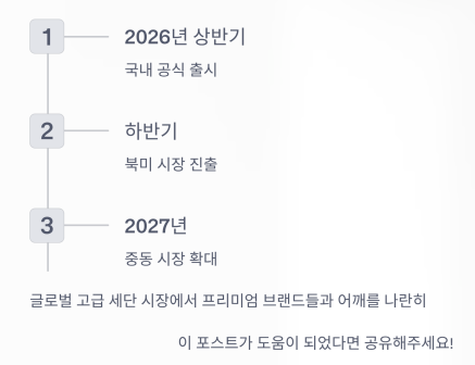 국내 출시 후 북미 및 중동 시장으로도 확대될 계획입니다.