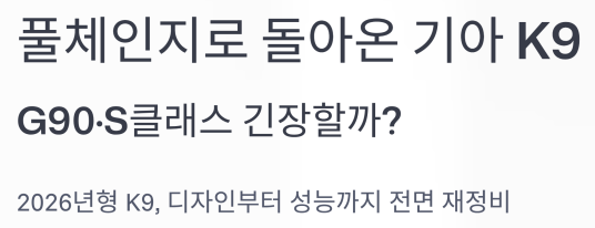 기아의 플래그십 세단 K9이 2026년형 풀체인지 모델로 다시 태어납니다.