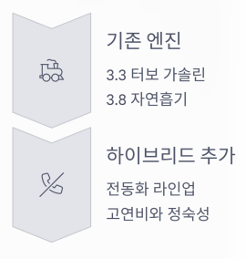 기존 3.3 터보 가솔린과 3.8 자연흡기 엔진 외에도