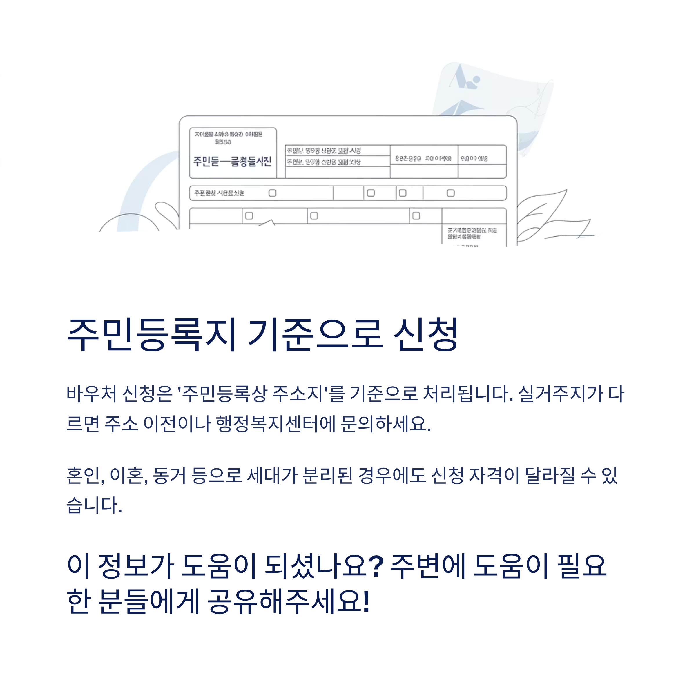 바우처 신청은 '주민등록상 주소지'를 기준으로 처리되기 때문에,