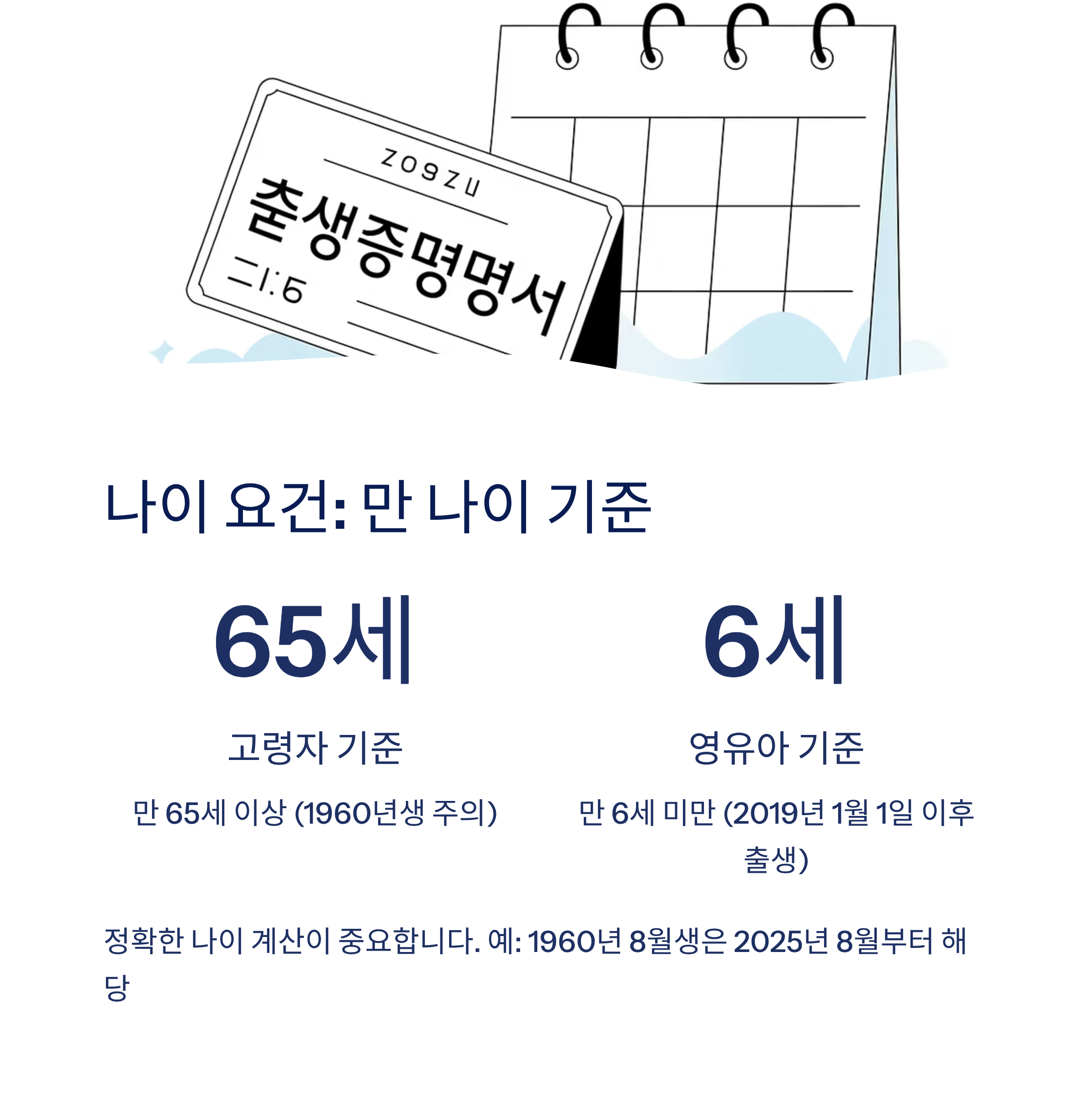 올해도 '만 나이' 기준이 적용되기 때문에 신청 전 나이 계산을 정확히 해야 합니다.