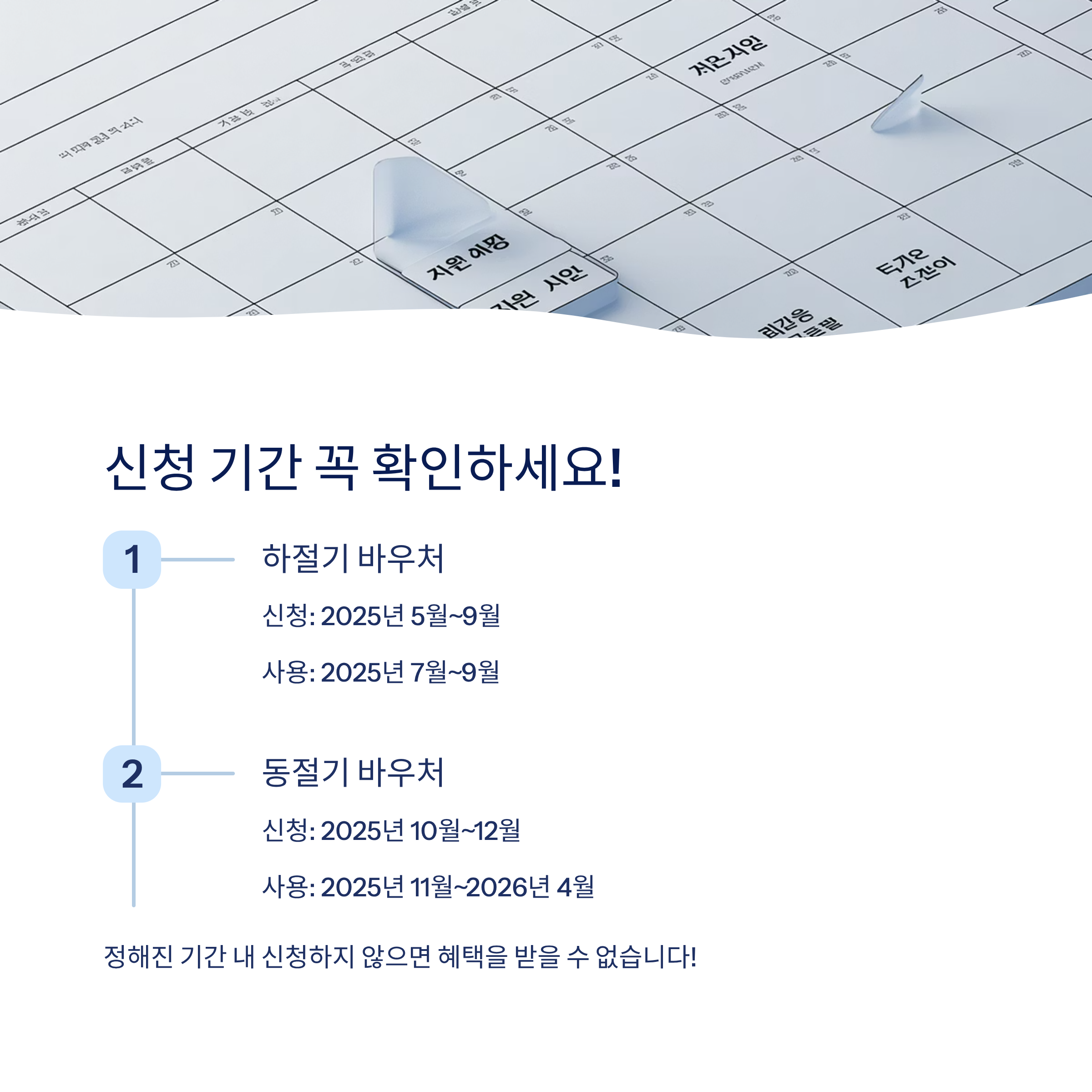 | 하절기 바우처 | 2025년 5월 ~ 9월 | 2025년 7월 ~ 9월 |