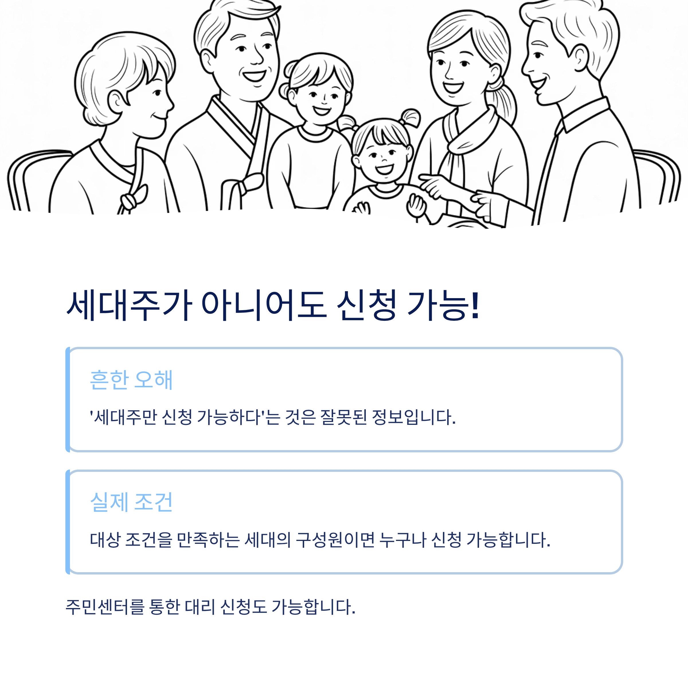 실제로는 '대상 조건을 만족하는 세대의 구성원'이면 누구나 신청 가능합니다.